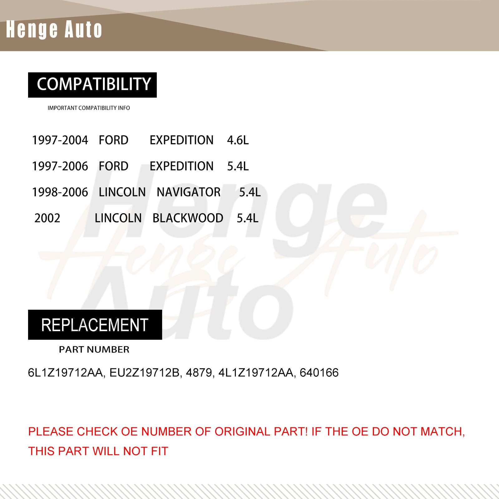【Aftermarket Reference Number(s)】:204879U, 4879, 4L1Z19712AA, 640166, 6L1Z19712AA, 7-4879, EU2Z19712B, F75HAB, F75HCA, F75Z19712CA, F75ZCA, F77ZBC, FO3030138, FO3030196, P40166, Q4879, XL1HAA, XL1Z19712AA, YJ385