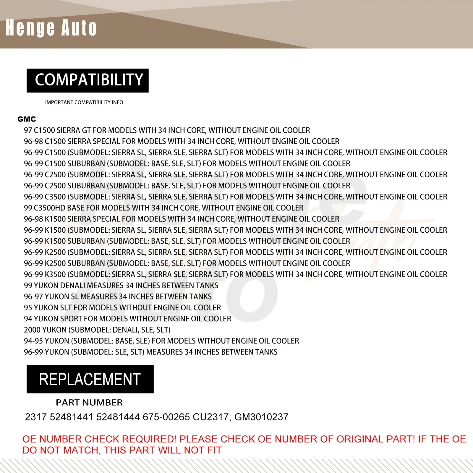 | Radiator Aluminum Core Plastic Tank Direct Fit for Chevy GMC Pickup Truck SUV